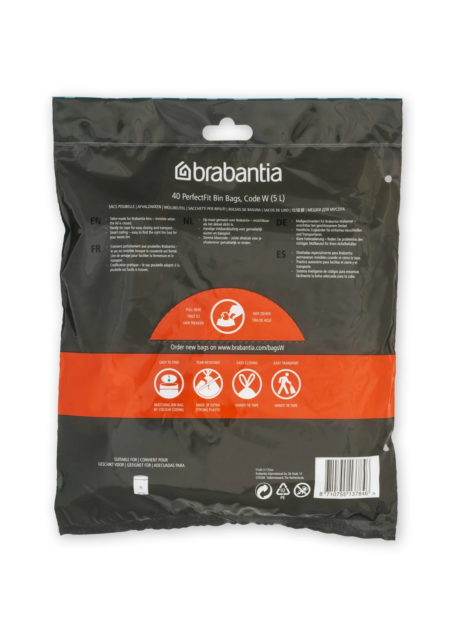 Brabantia perfectfit vuilniszakken zijn perfect voor je Brabantia prullenbak, en gemaakt om het leven gemakkelijker te maken. Dus zijn ze extra sterk, zitten ze in een handige dispenserverpakking en hebben ze een dito trekbandsluiting! Trek er de zak mee uit de emmer en knoop ‘m ermee dicht. Weet je niet zeker welke maat je nodig hebt, kijk dan naar de kleurcode aan de binnenkant van het deksel van je vuilnisbak. Geslaagde zakken, perfect passend bij je Brabantia afvalbak.