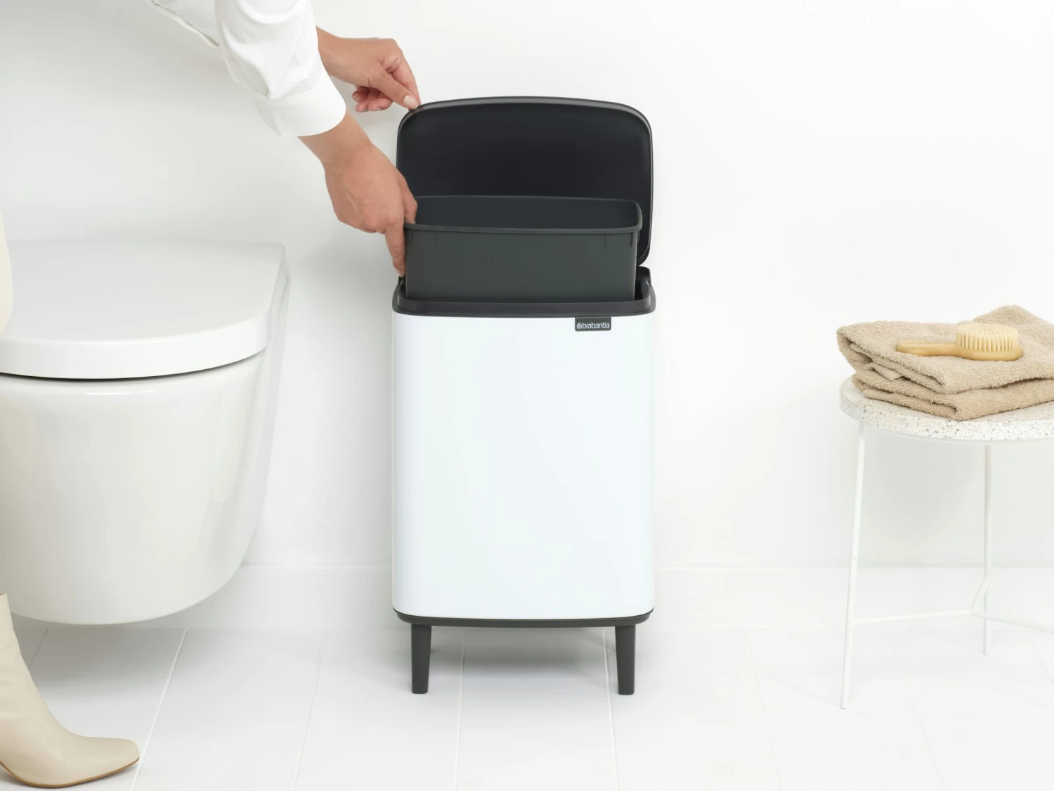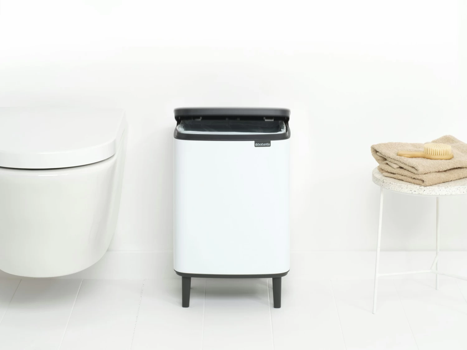 De Brabantia Bo Hi afvalemmer 12 liter is een beauty op vier elegante pootjes. Het unieke deksel is eenvoudig te openen vanaf de linker-, rechter- en voorkant van de bak. Je hoeft dus niet meer met je arm te draaien om er iets in te doen. Nog een pluspunt: de handgreep voor eenvoudig verplaatsen en legen. En dankzij zijn formaat en design doet deze prullenbak het goed in elke ruimte. Een sprookjeskast!Voordelen & Kenmerken