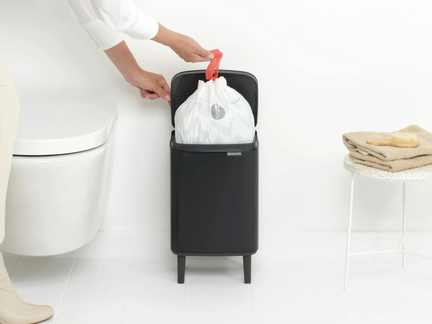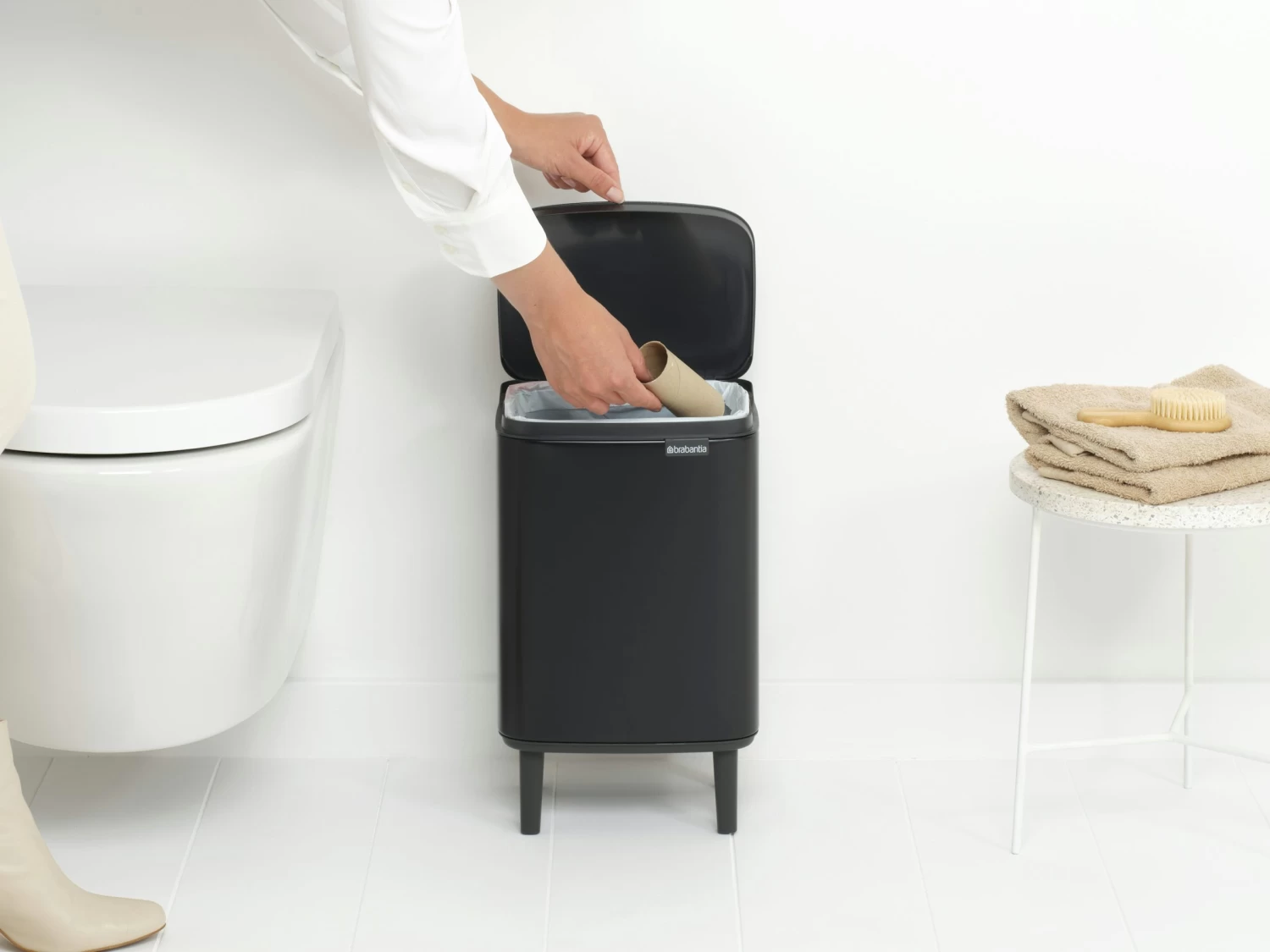 Niet te groot, niet te klein, maar precies goed. Dat is de Brabantia Bo Hi afvalemmer 7 liter voor jou! Deze ruimtebesparende afvalbak past perfect in elke hoek. Plaats hem waar je maar wilt, want je kunt het deksel eenvoudig optillen vanaf de linker-, rechter- of voorkant van de bak. Je hoeft dus niet meer met je arm te draaien om er iets in te doen. Ga Bo!Voordelen & Kenmerken