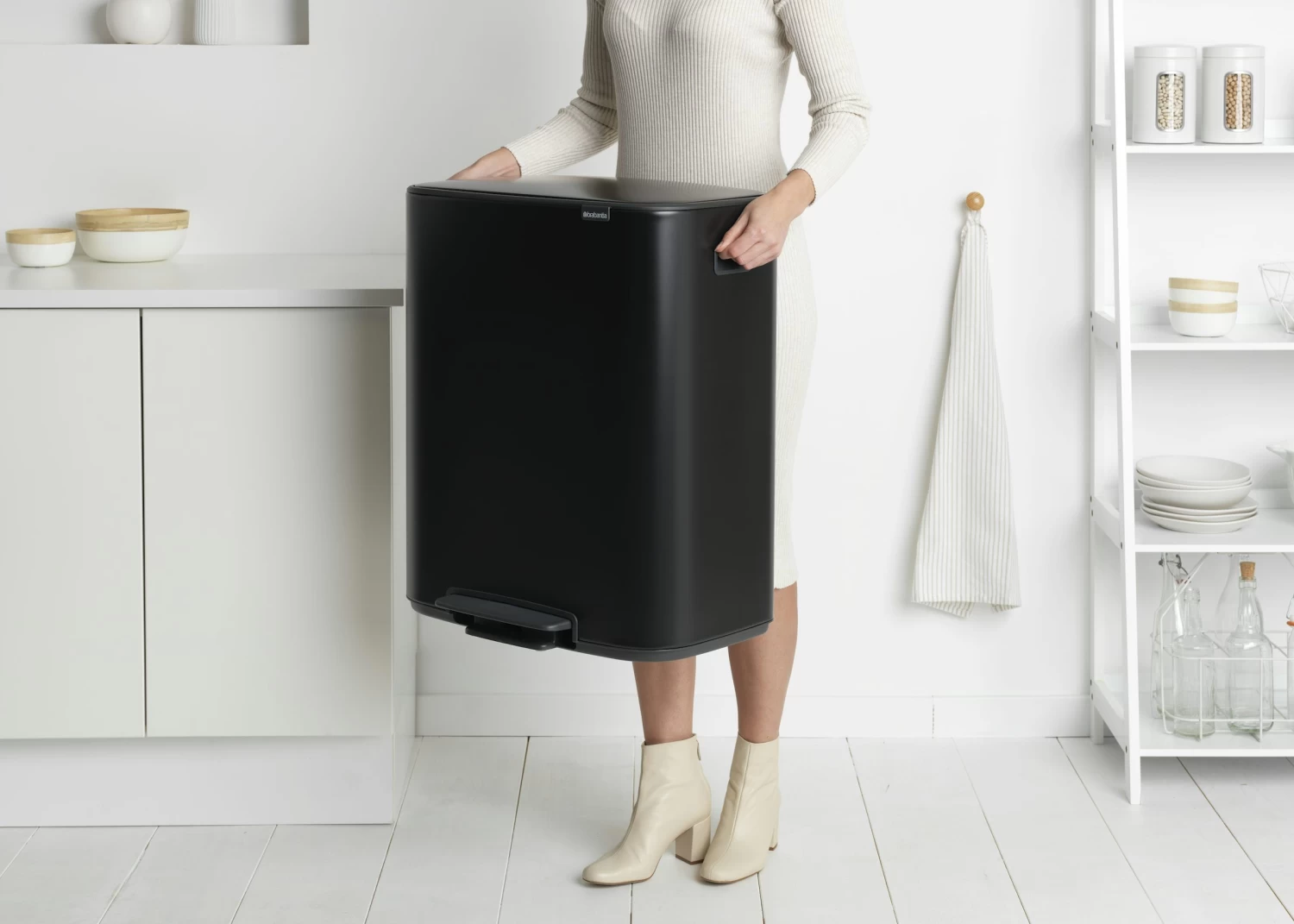 Wil je een afvalemmer die er geweldig uitziet en een grote capaciteit heeft? Maak kennis met bo pedaalemmer 60 liter – Brabantia’s big beauty. Deze XXL prullenbak is ontworpen om je huis en de planeet mooier te maken. Ze kan flink wat afval aan en is dankzij de ingebouwde handgrepen makkelijk te verplaatsen. Oh, en het deksel sluit zachtjes en opent ‘handsfree’ door een tikje met je voet op het pedaal – wel zo hygiënisch!