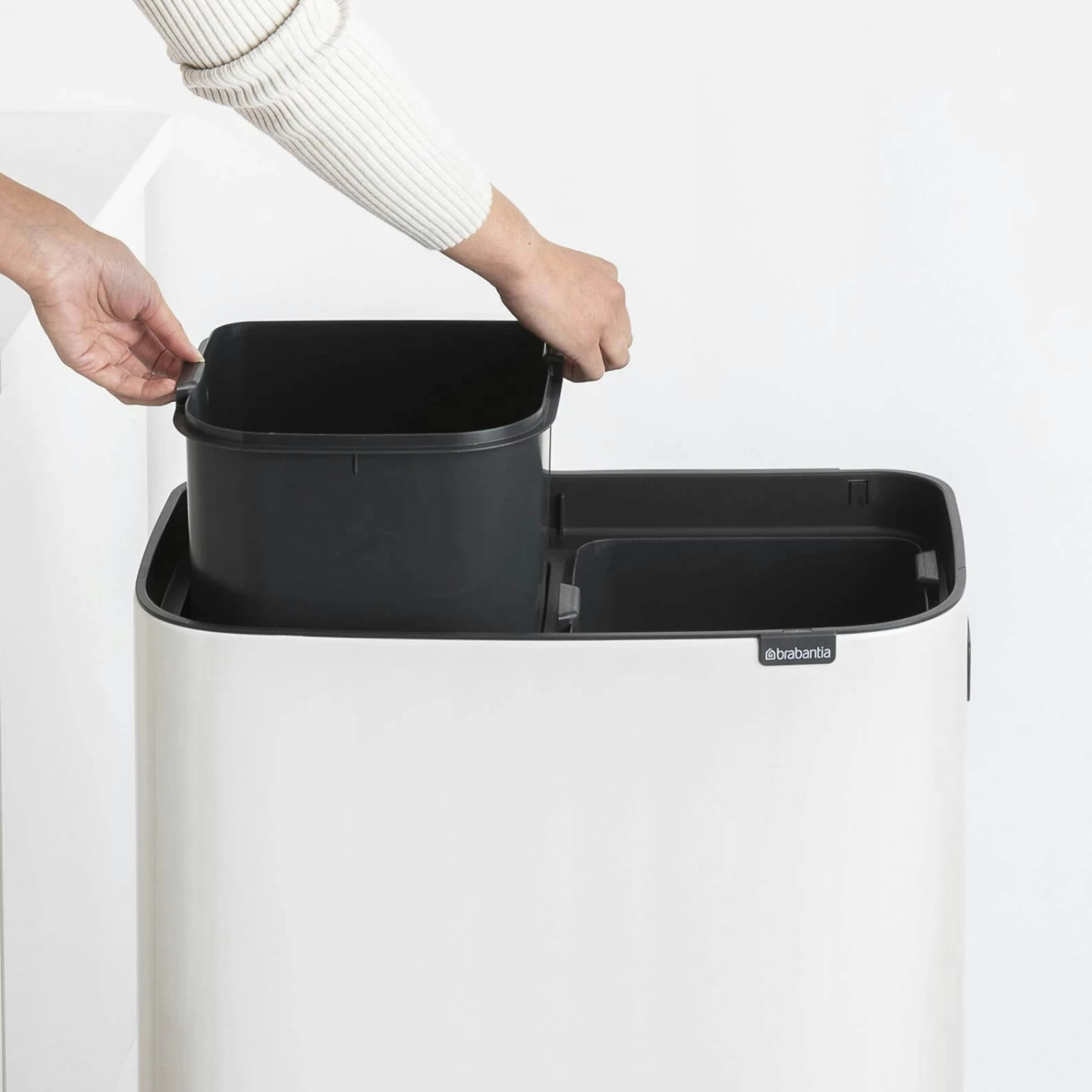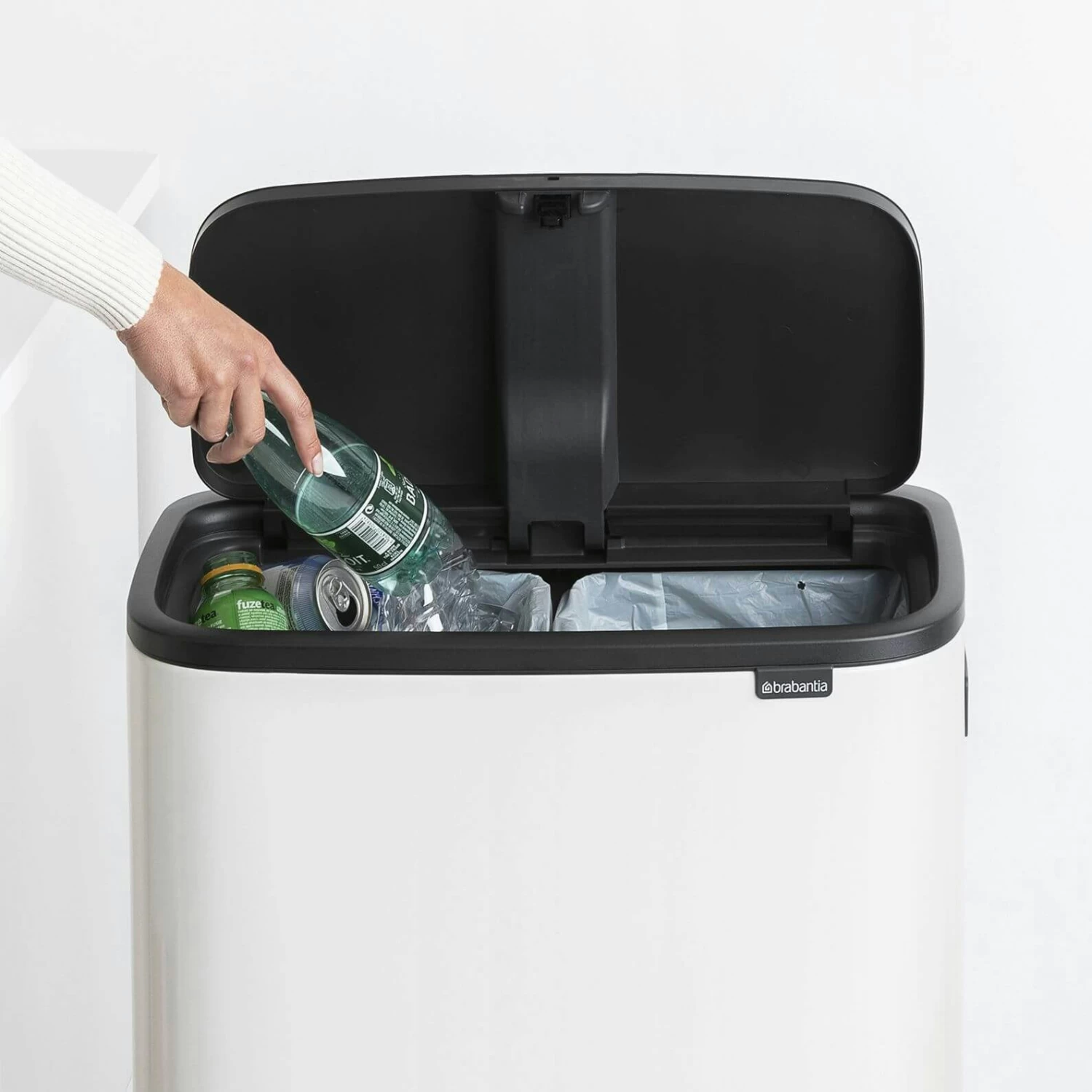 Op zoek naar een mooie oplossing voor het scheiden van je afval? Deze XXL Brabantia Bo Touch Bin Hi 2 x 30 liter heeft een prachtig design en alles wat je nodig hebt om thuis makkelijk afval te scheiden. Zoals twee ruime en uitneembare binnenemmers voor 2 soorten afval. Opent bij de lichtste aanraking, past perfect tegen een muur en is super stabiel dankzij de verstelbare antislip voetjes. Twee afvalemmers op de plaats van één.