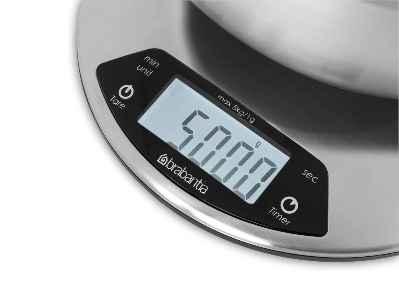 Brabantia keukenweegschaal digitaal profile matt steel – rond, met kookwekker
