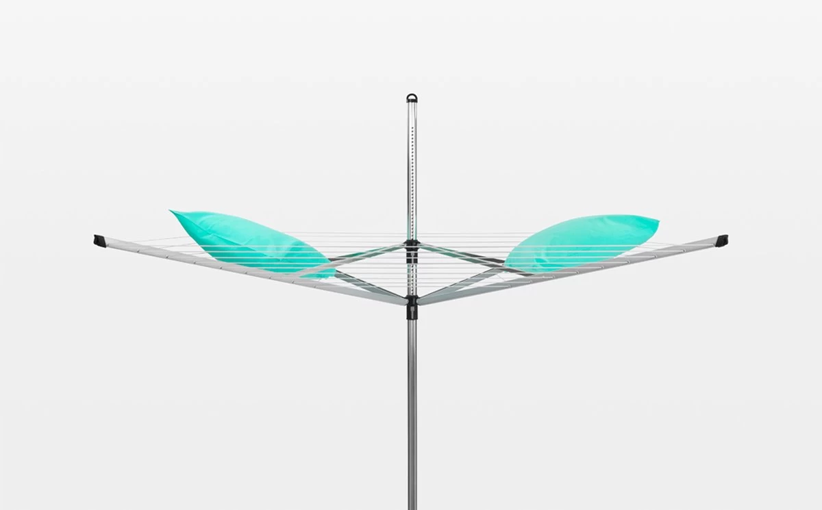 Gemakkelijk en milieuvriendelijk je was drogen doe je met deze Brabantia Lift-O-Matic Droogmolen met Grondanker – 60 m. Met het Lift-O-Matic systeem is de molen traploos instelbaar op je ideale werkhoogte. In de laagste positie is de droogmolen bijvoorbeeld ideaal voor het luchten van kussens en dekbedden.