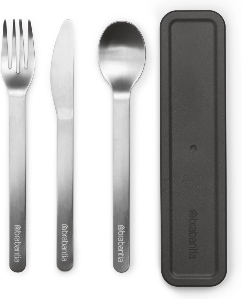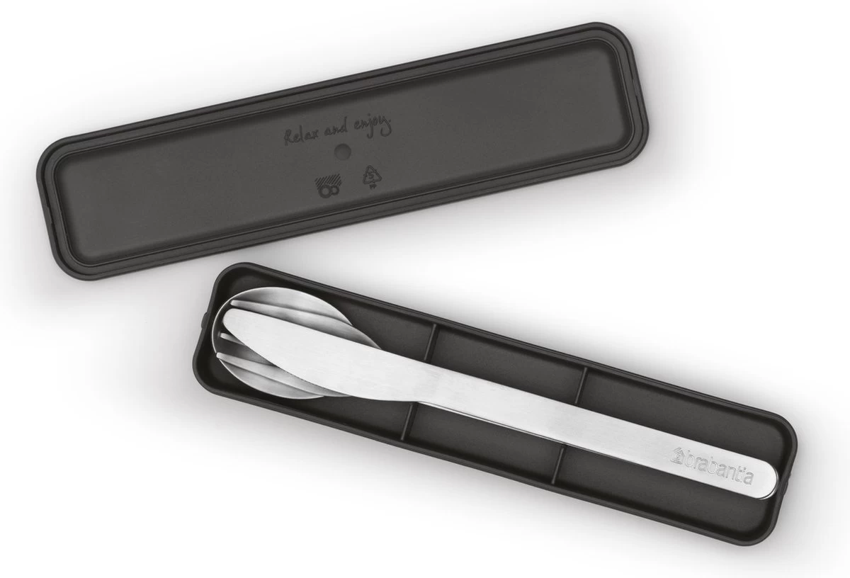 Stop met het gebruik van plastic bestek onderweg, gebruik deze herbruikbare Brabantia Make & Take 3-delige bestekset. Een tijdloos mes, vork en lepel van hoogwaardig roestvrij staal. Makkelijk schoon te maken, vaatwasmachinebestendig en veilig verpakt in een compact doosje. Een set om heel, heel vaak opnieuw te gebruiken.