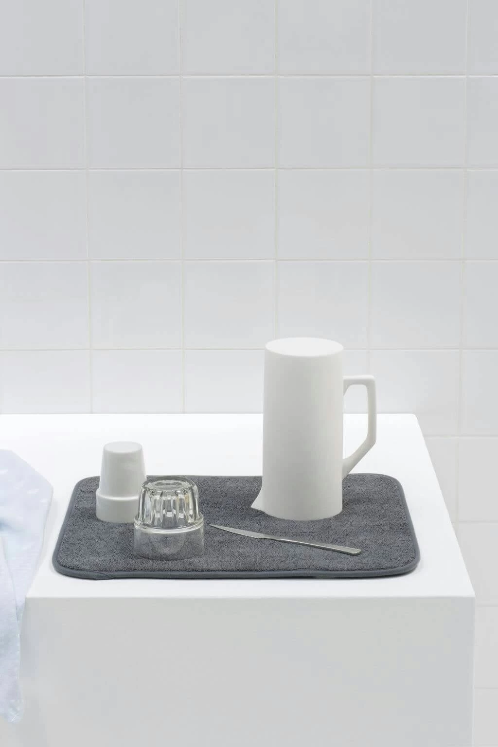 De vaat drogen en je aanrecht droog houden zonder ook maar een vinger uit te steken? Gebruik de Brabantia SinkSide microvezel afdruipmat! Deze opvouwbare mat absorbeert 7 keer zijn gewicht aan water. En hij is zacht, dus minder kans op scherven. Klaar? Laat de mat drogen en vouw hem daarna op, of doe hem in de wasmachine. Vaattastisch! Voordelen & Kenmerken