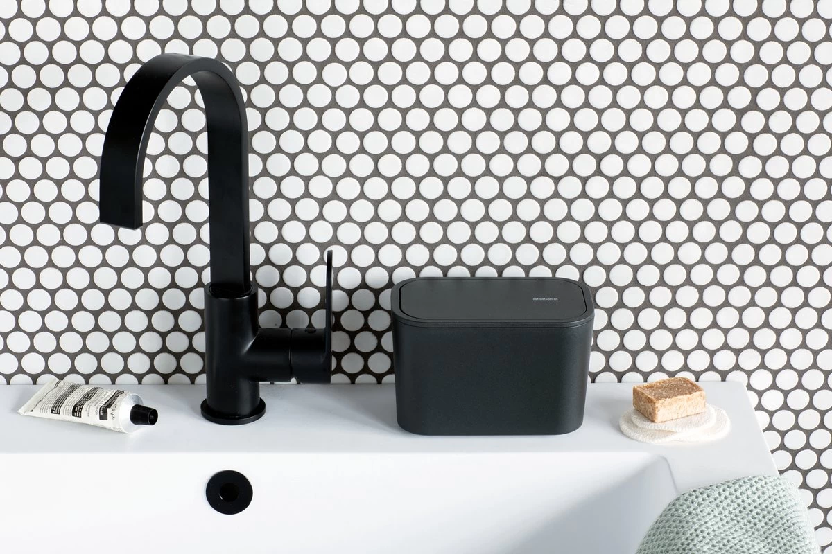 Houd je wastafel schoon en netjes met dit Brabantia MindSet badkamer afvalbakje! Een baby afvalbakje met klapdeksel, ideaal voor het weggooien van wattenstaafjes of pads. Stijlvol, hygiënisch en te bedienen met één hand. Voor een mooi georganiseerde badkamer.