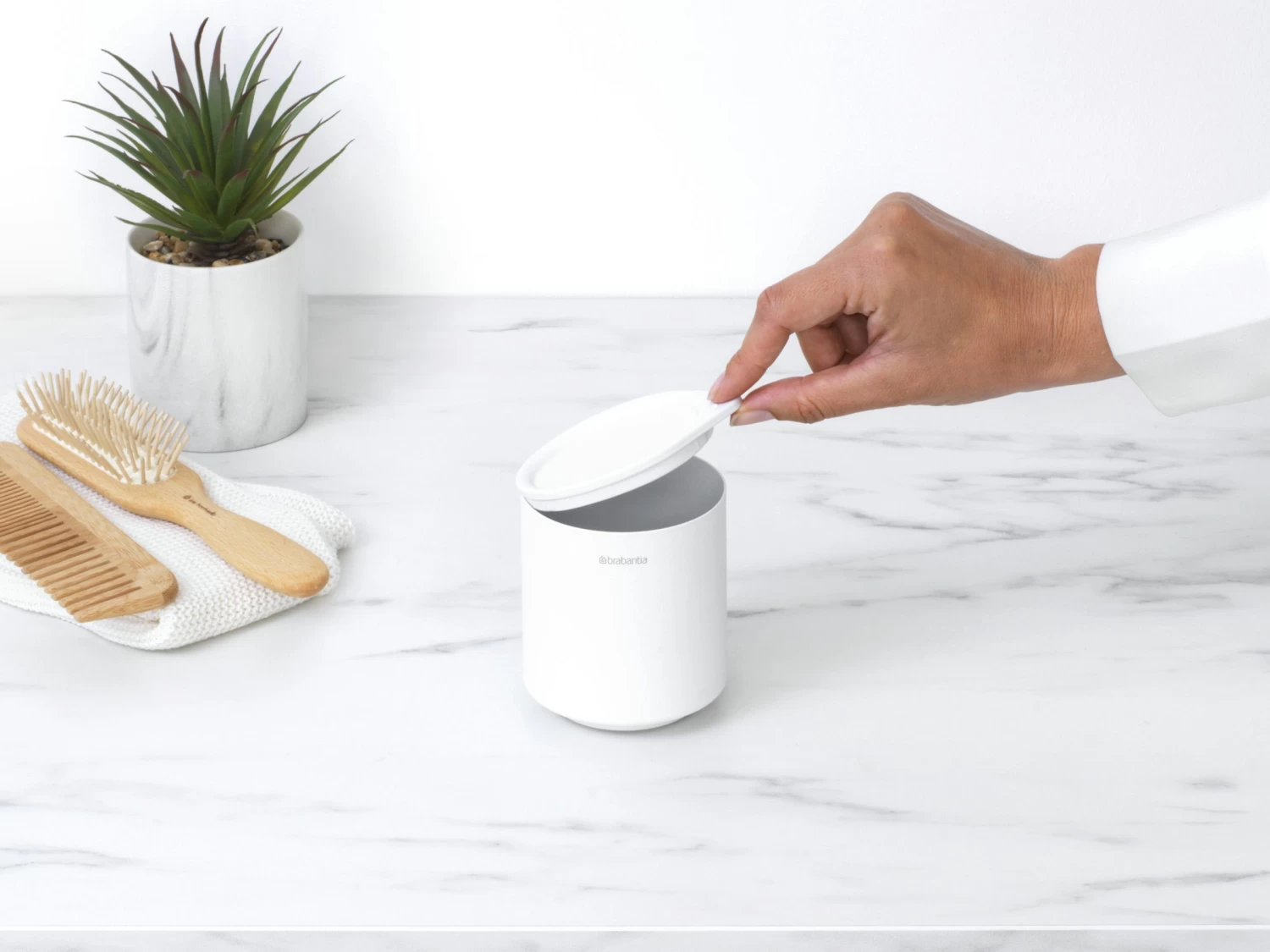 Het zijn vaak de kleine dingen die ons vrolijk maken. Zoals dit Brabantia MindSet opbergpotje met deksel. Een pront voorraadpotje voor al die kleine dingen die je graag bij elkaar houdt. Perfect voor wattenbolletjes of -schijfjes, het deksel houdt ze droog en stofvrij. Een perfect potje!