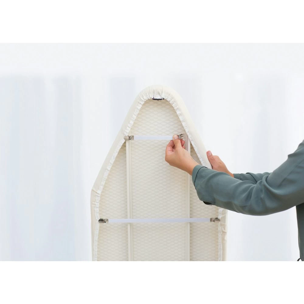 Een strijkplankovertrek moet strak gespannen zijn om zijn werk goed te doen. Deze set van drie Brabantia strijkplankhoesspanners houdt je hoes op zijn plaats, als hij niet de handige koordbinder en het stretchsysteem van Brabantia heeft. Geen uitglijders, geen kreukels, we houden het strak.