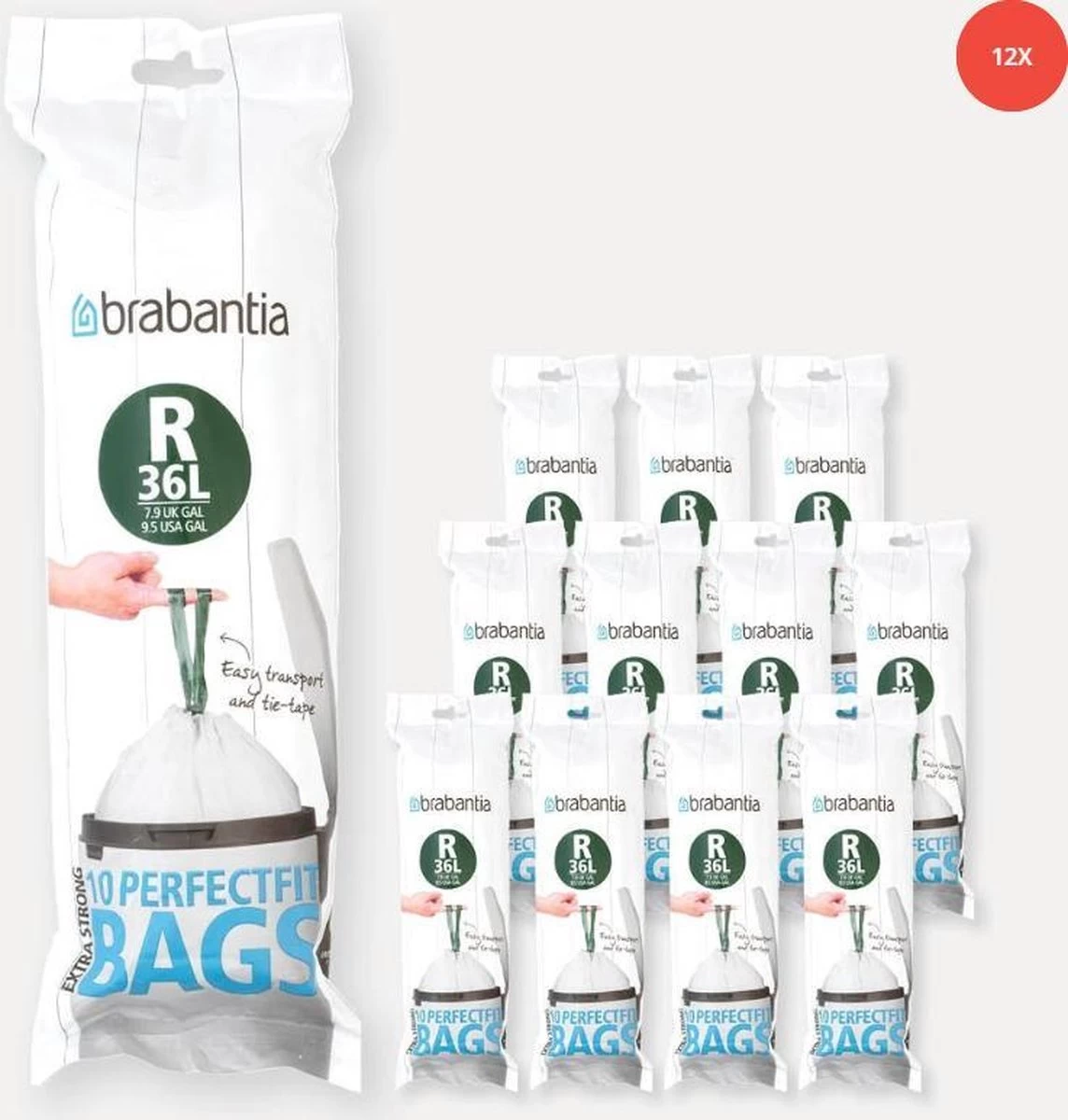 Brabantia Perfect Fit Afvalzakken – 36 l – Code R – set van 12 rollen x 10 stuks