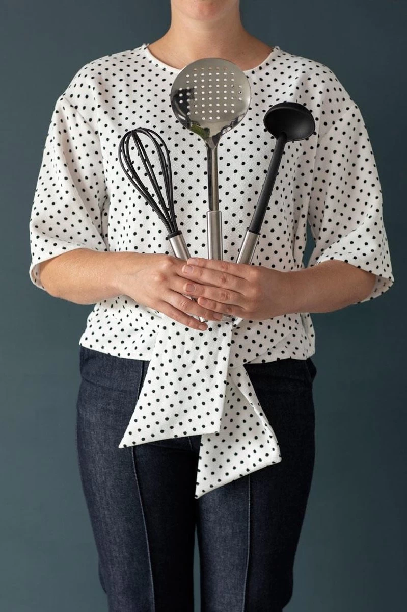 - Vloeiende vormen en gemaakt van veerkrachtig kunststof materiaal – geen beschadiging aan anti-aanbak pannen