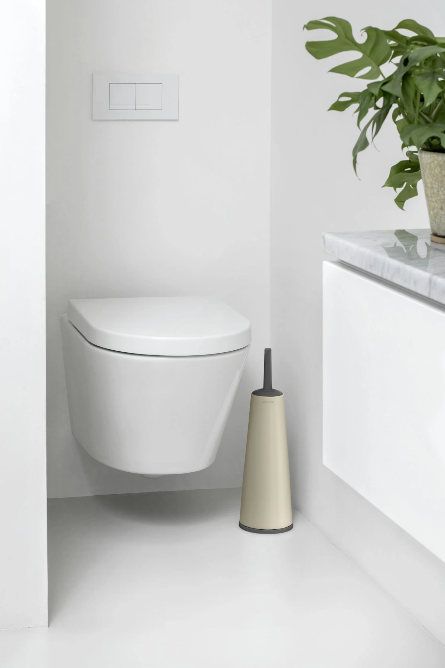 Niet dol op het schoonmaken van het toilet? Gewapend met deze betrouwbare Brabantia ReNew toiletborstel met houder is het een stuk makkelijker en sneller. Bonus: de houder houdt je borstel uit het zicht, maar staat paraat wanneer je hem nodig hebt. En omdat hij is gemaakt van corrosiebestendige materialen blijft hij mooi – zelfs in vochtige ruimtes. Discreet design!