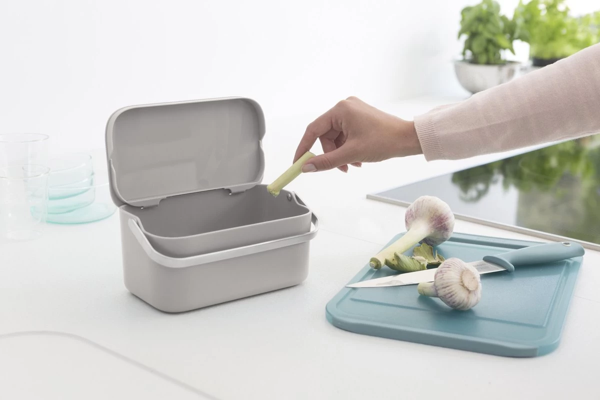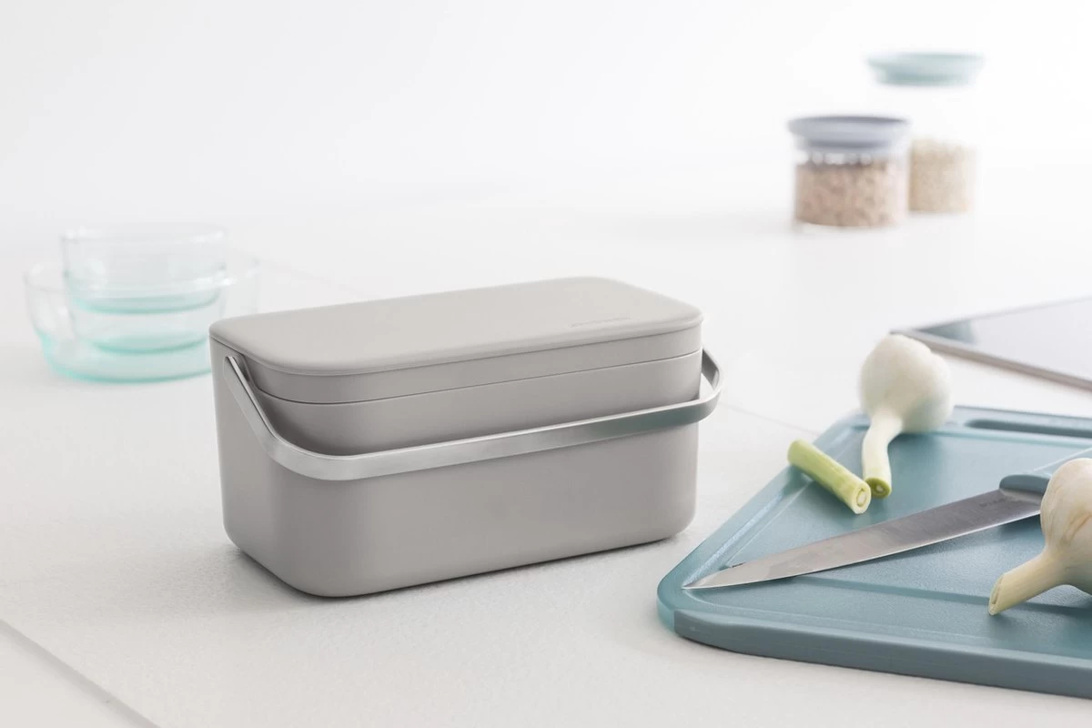 Afgeknapt op je afwas? Het Brabantia Sink Side Aanrecht Afvalbakje – 1,8 liter geeft aandacht aan je aanrecht. Dit fijne maatje is eenvoudig te openen, te verplaatsen en schoon te maken. Het deksel heeft een ‘open-stand’, waardoor je ook grotere karweitjes eenvoudig klaart en dankzij het roestvrijstalen handvat leeg je het bakje zonder gedoe in je biobak.