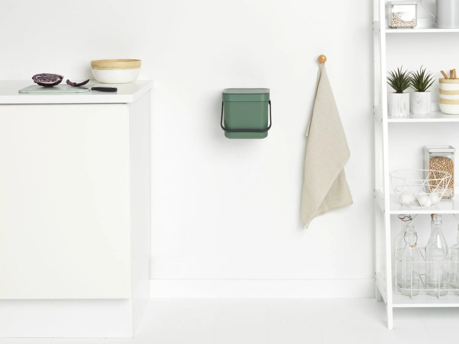 Dit leuke Brabantia Sort & Go afvalemmertje van 6 liter met openblijvend deksel is super voor schillen, korstjes, kliekjes … eigenlijk voor al je organische keukenafval. Zet hem op je aanrecht, verstop hem in een la of hang ‘m aan de muur met de bijgeleverde muurbeugel. Vol? Grijp het handige hengsel en leeg hem. Oh, en wil je er afvalzakken bij? De PerfectFit 100% composteerbare zakken, maat S, passen perfect. XS formaat, XL gemak.