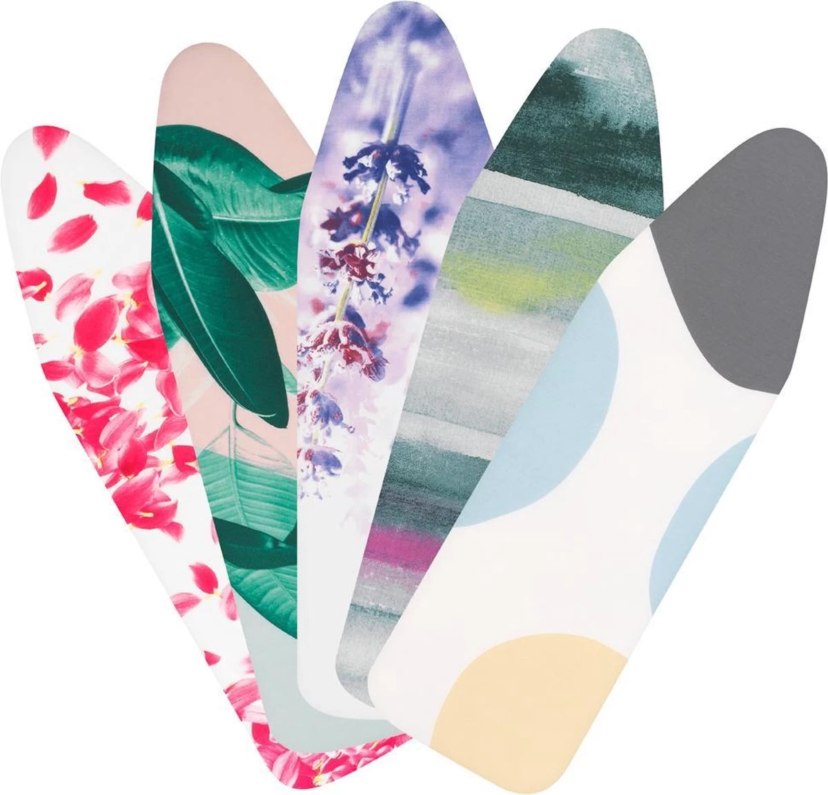 Met de Brabantia katoenen strijkplank overtrek wordt het strijken leuk. De gebruiksgemakken van de overtrek zijn: grote keus in uitvoering en kleuren, overtrek altijd strak en zonder vouwen voor comfortabel strijken, makkelijk aan te brengen met koordbinder en snelspanner, 100% kwaliteitskatoen en wasbaar. Verkrijgbaar in de basisuitvoeringen: 100% katoen, 100% katoen met 2 mm schuimlaag, 100% katoen met hittebenstendige ‘strijkijzer- parkeerplaats’ en 2 mm schuimlaag, of in hittebestendig gemetalliseerd katoen. Ook verkrijgbaar in speciale uitvoeringen: 100% katoen met 8mm schuimlaag of 100% katoen met 4mm schuim + 4mm viscoselaag.