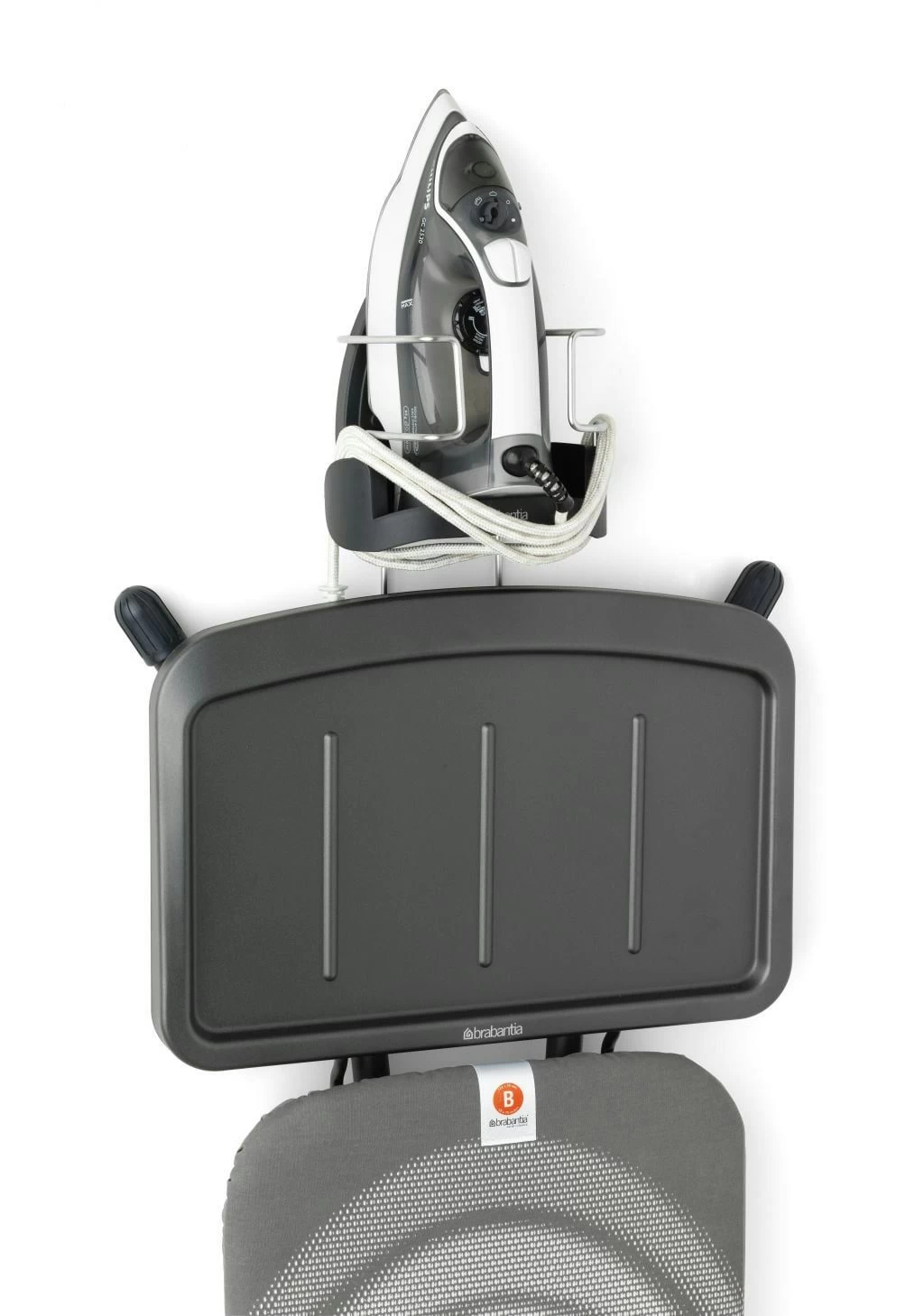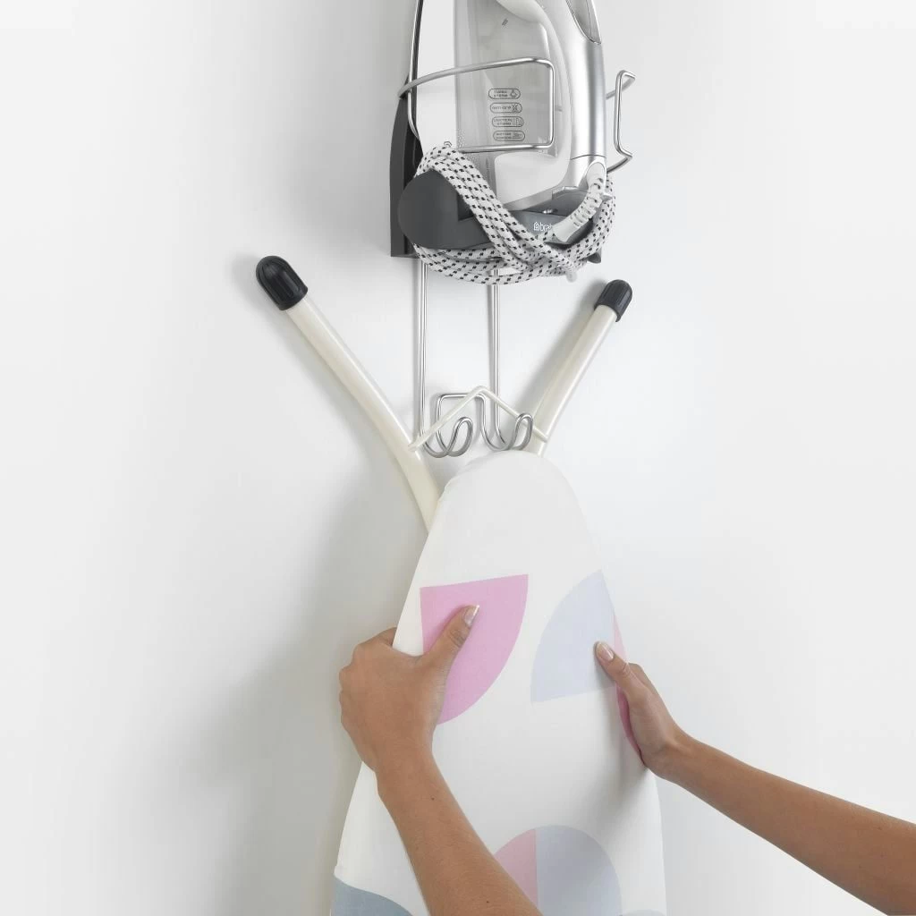 Klaar met strijken? Laat je strijkijzer niet afkoelen op je strijkplank, maar berg alles snel en veilig op met de strijksethouder van Brabantia. Gemaakt van hittebestendige materialen, dus eerst afkoelen hoeft niet. Zet je hete strijkijzer vast, rol het snoer op en hang de strijkplank aan de stevige haak. Veilig voor kleine handjes, netjes en opgeruimd in een mum van tijd.
