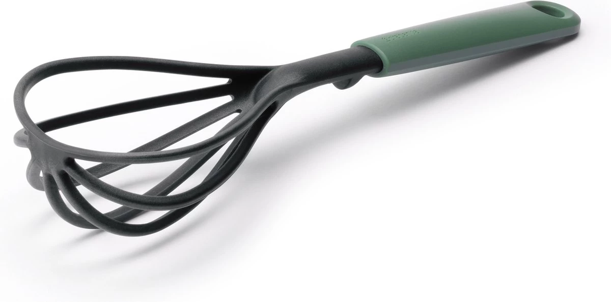 • Vloeiende vorm van veerkrachtig kunststof materiaal – voorkomt schade aan anti-aanbak pannen