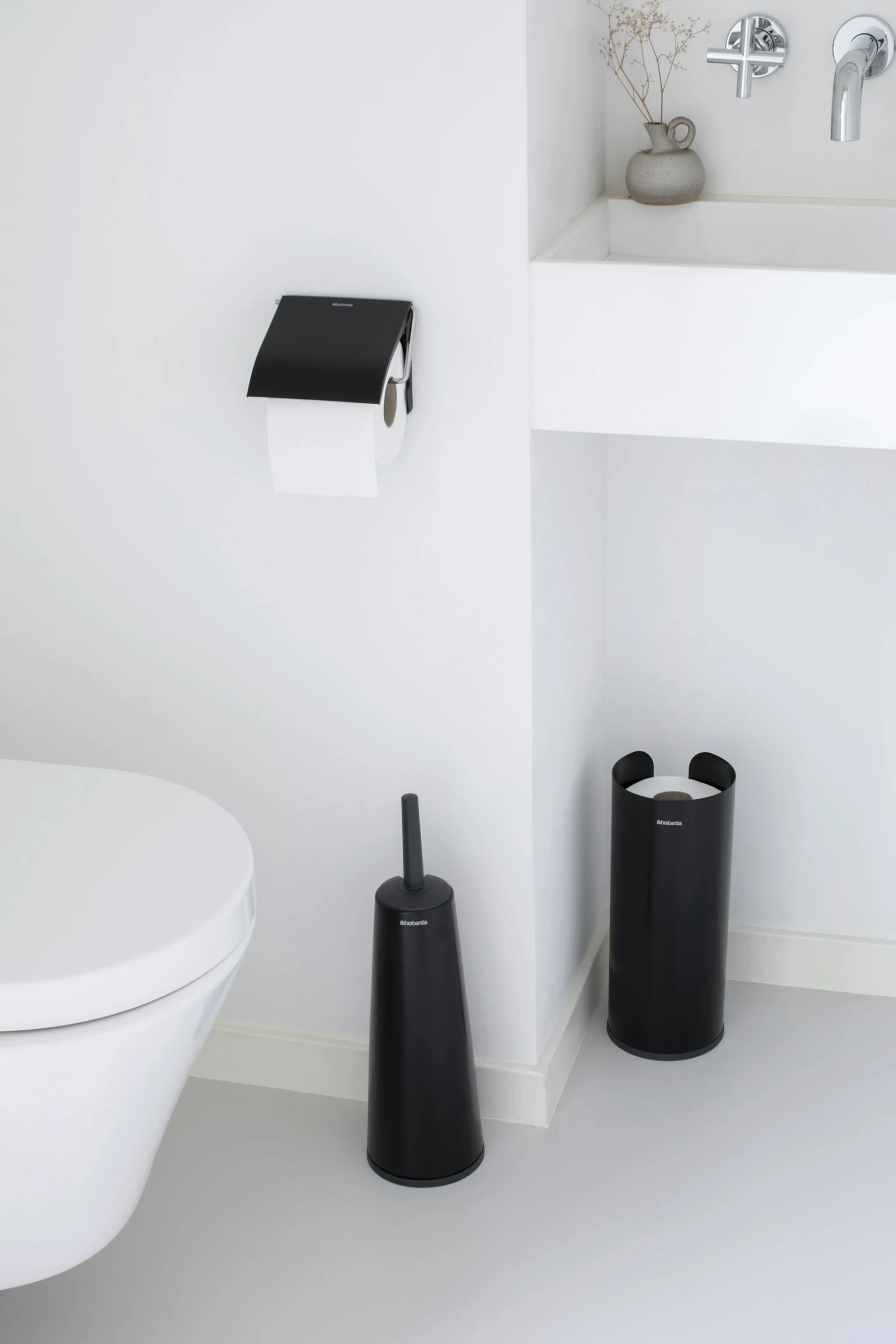 Met dit top-trio is je kleinste kamertje restylen een makkie. Deze set toiletaccessoires begint met een sterke en hygiënische toiletborstel met houder. De minimalistische toiletrolhouder beschermt je wc-papier tegen stof en maakt het makkelijk om papier te pakken. De reserverolhouder houdt maximaal 3 rollen discreet op voorraad. Meer heb je niet nodig voor een stijlvolle toilet of badkamer.