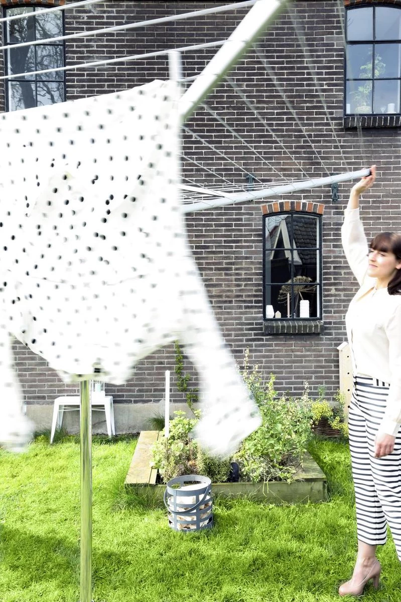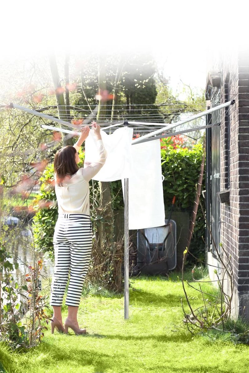 Gemakkelijk en milieuvriendelijk je was drogen met een Brabantia Topspinner Droogmolen van 40 meter met betonanker van 45 mm doorsnee. Met de Topspinner Droogmolen kun je de was snel en gemakkelijk buiten drogen, dankzij de soepeldraaiende armen en de kwalitatieve drooglijn. Met het gebruiksvriendelijke ‘paraplu’-systeem draait de droogmolen onafhankelijk van de paal, de drooglijnen komen naar je toe. Het bijna wrijvingloze design waarborgt dat de armen met de drooglijnen soepel draaien, zelfs als ze beladen zijn met zwaar of nat wasgoed. Dit betekent ook dat de Topspinner Droogmolen gemakkelijker in de wind draait, waardoor de was zelfs sneller droogt. Fris en ‘gratis’ je was drogen want buiten drogen is beter voor het milieu én je portemonee. Meer droogcomfort dankzij de soepeldraaiende armen, ook vol natte was en geen gesjouw meer met de wasmand. Met het afsluitbare kunststof betonanker is deze droogmolen gemakkelijk in het beton te plaatsen.