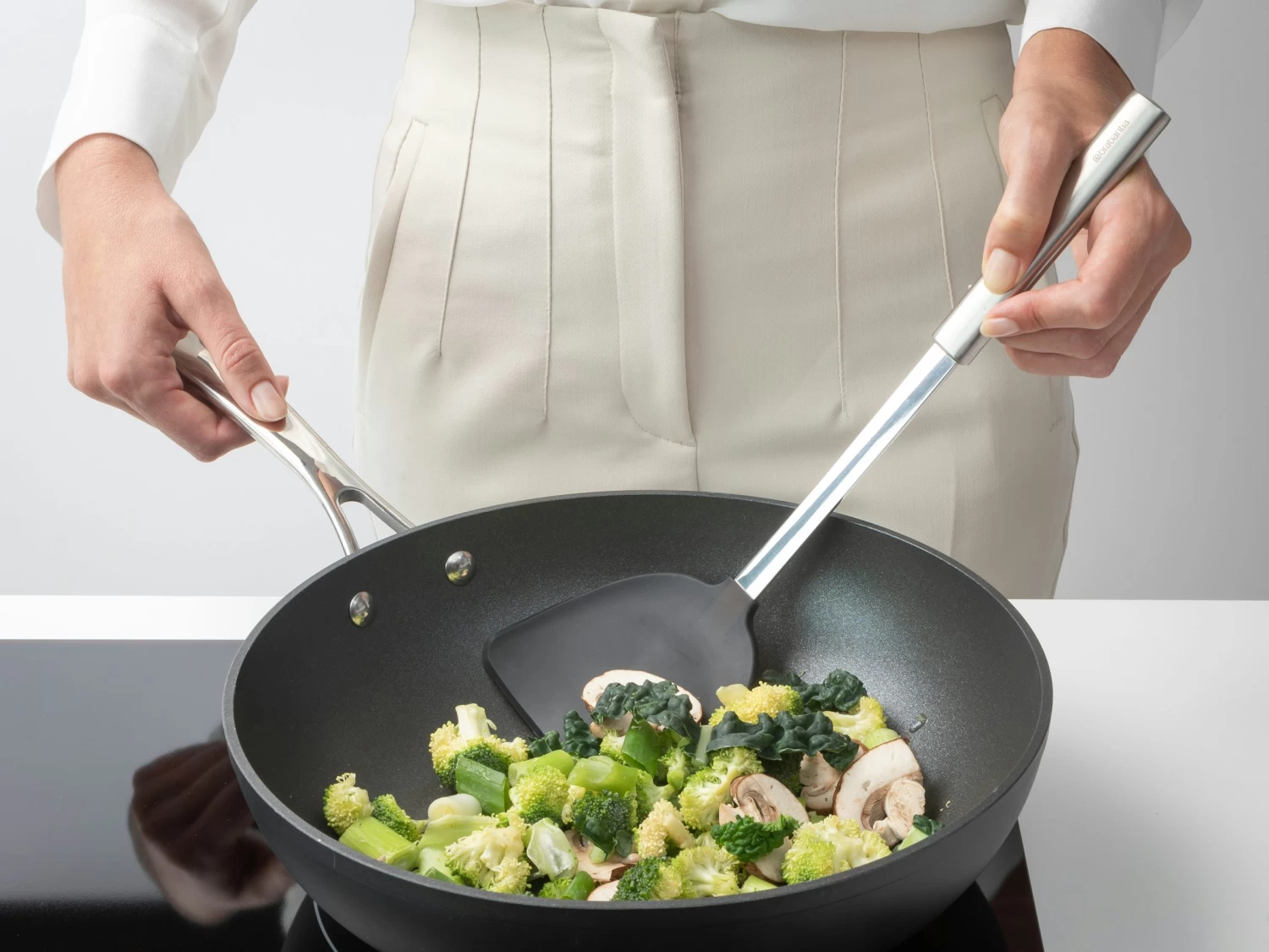 Ga je de boel omgooien in je keuken? Probeer deze siliconen Brabantia Profile wokspatel eens. Hij heeft een stevig mat roestvrijstalen handvat en een flexibele siliconen bovenkant. Perfect voor je wok en elke andere pan en zelfs vaatwasmachine, en hittebestendig. Wo(r)k it!